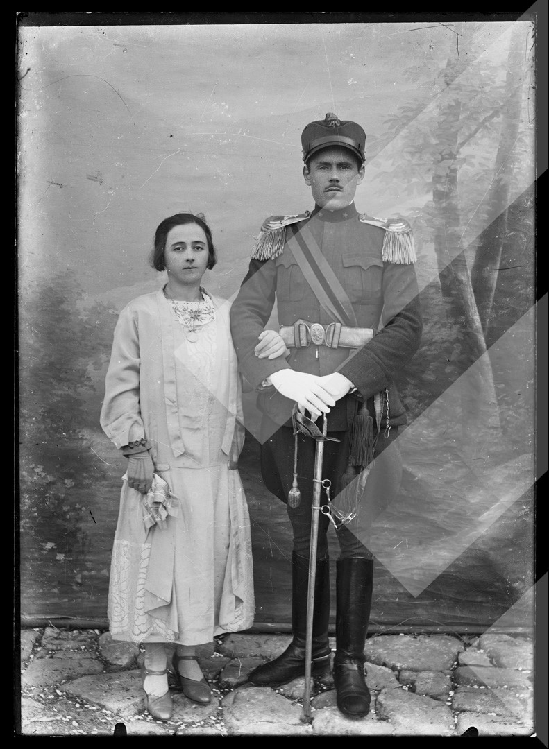 Dhimitër Vangjeli , "", 1930-1935 , , oficer i mbretërisë shqiptare me të shoqen, , pllakë xhami , 13 x 18 cm