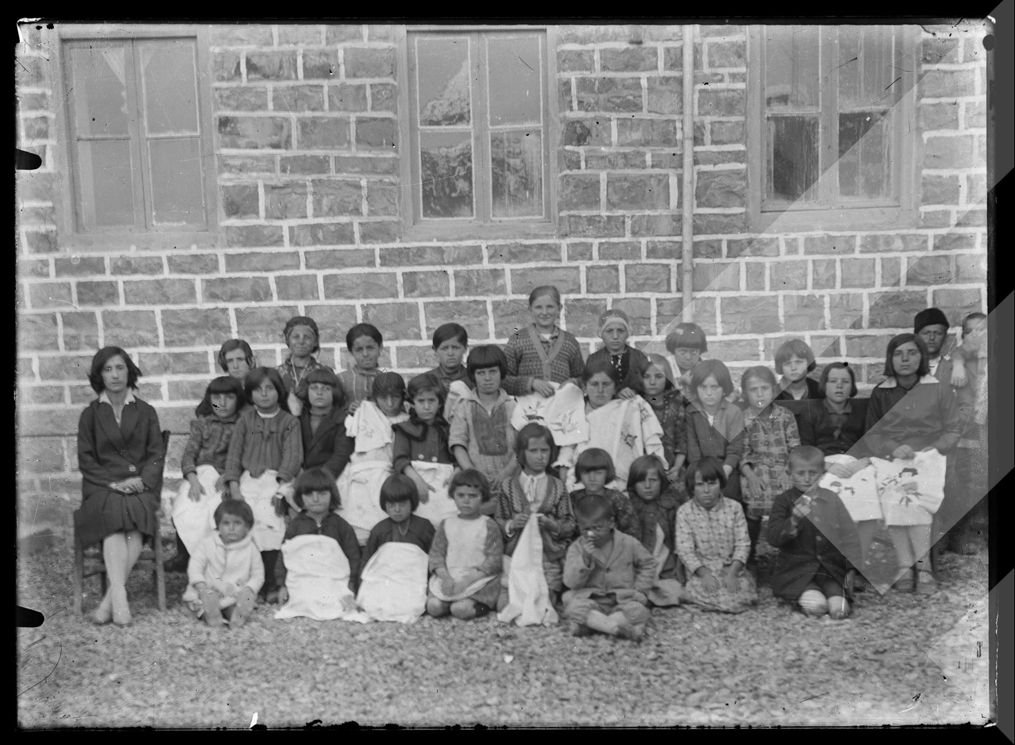 Dhimitër Vangjeli , "", rreth 1930 , , nxënës të orës së qindistarisë, , pllakë xhami , 13 x 18 cm