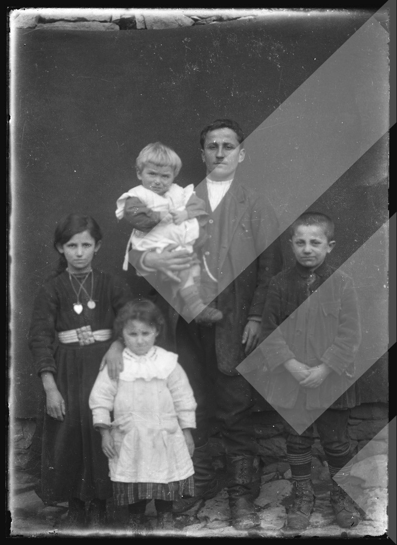 Dhimitër Vangjeli , "", rreth 1920-1925 , , babai dhe bijtë, , pllakë xhami , 13 x 18 cm