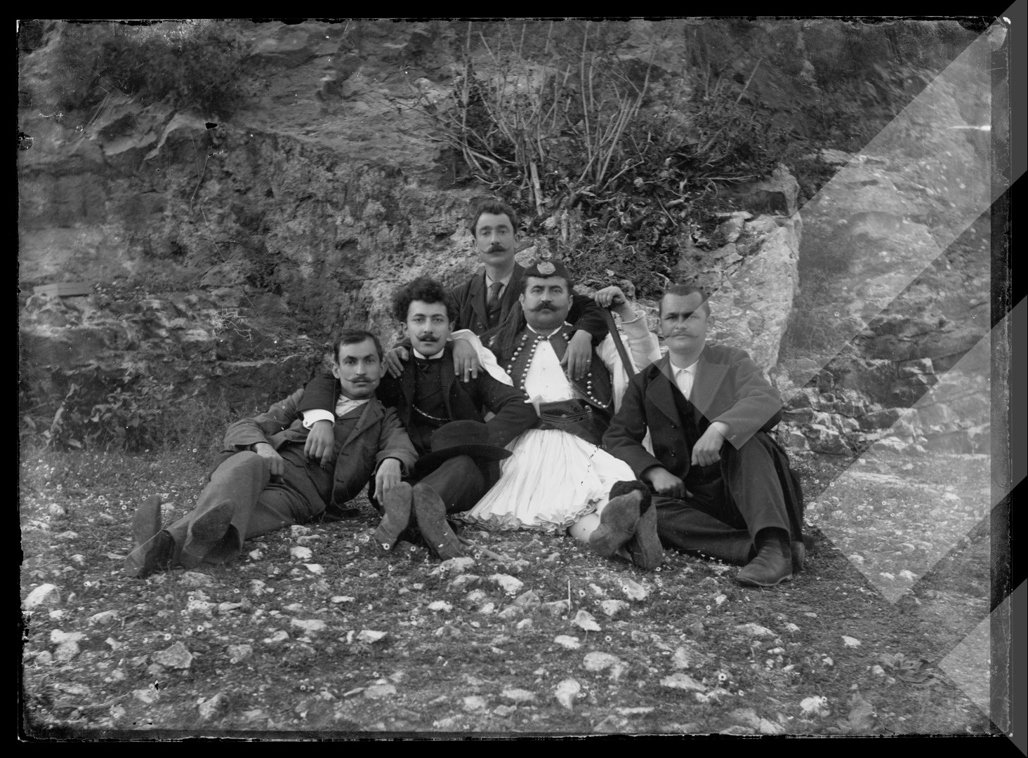 Dhimitër Vangjeli , "", rreth 1913-1914 , , Miq në pozë, , pllakë xhami , 13 x 18 cm