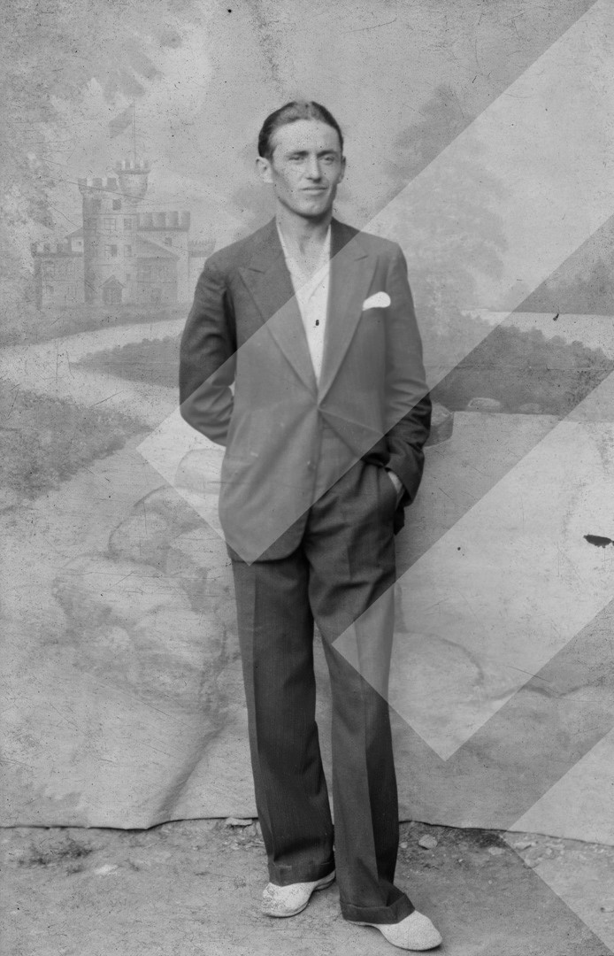 Vani Burda, rreth 1935-1940, Burrë në pozë, negativ në letër, 9 x 14 cm.