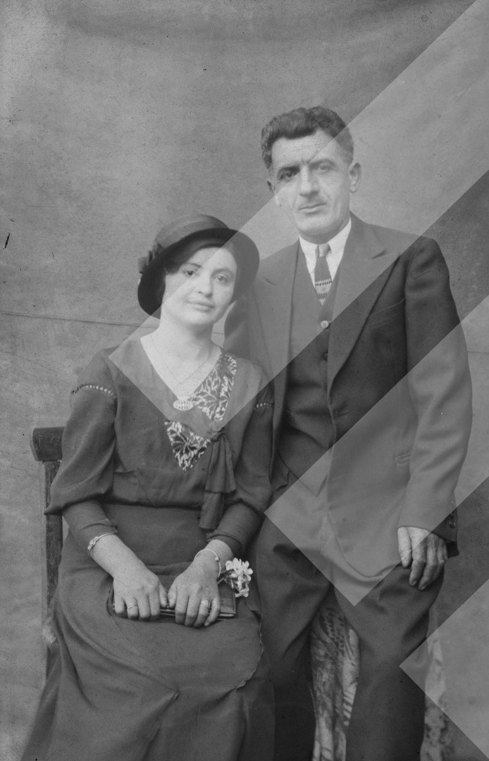 Vani Burda, rreth 1935-1940, bashkëshortë në pozë, negativ në letër, 9 x 14 cm.