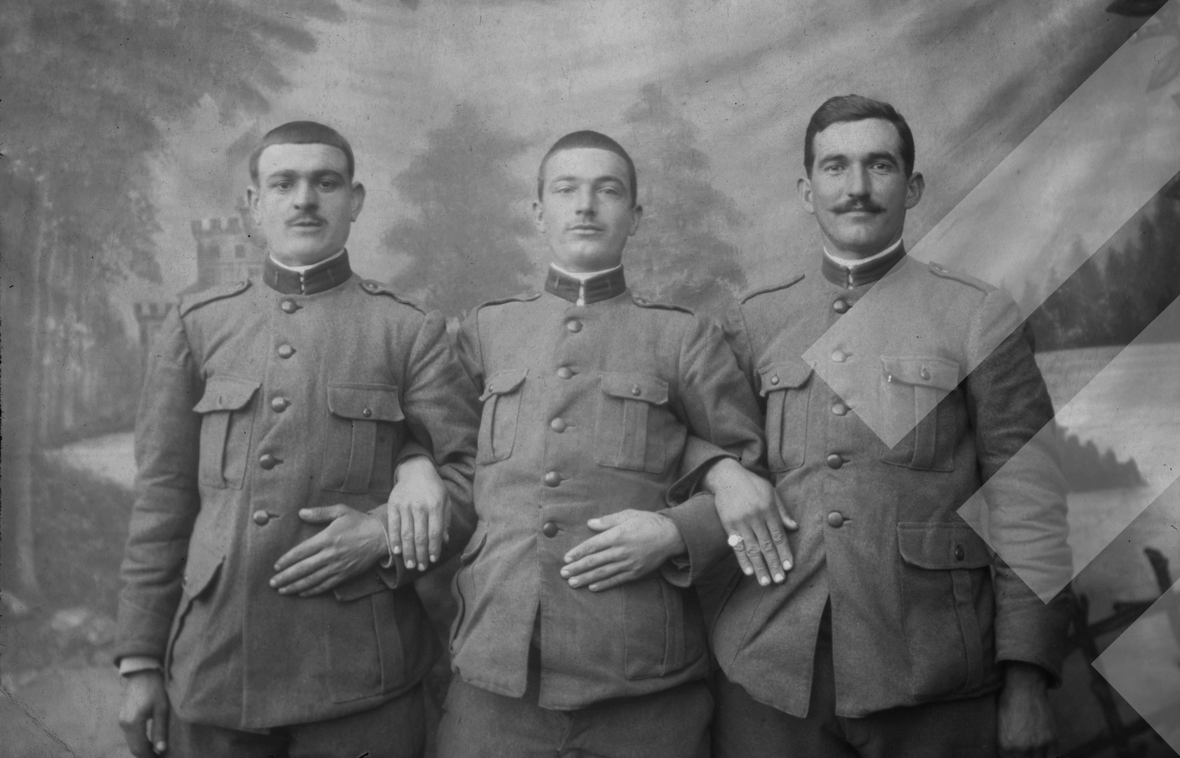 Vani Burda, rreth 1935-1940, Ushtarë në pozë, negativ në letër, 9 x 14 cm.