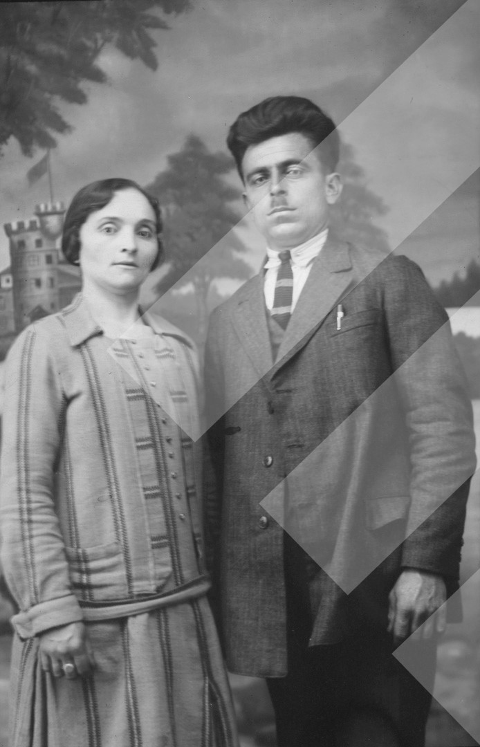 Vani Burda, rreth 1935-1940, Bashkëshortë në pozë, negativ në letër, 9 x 14 cm.