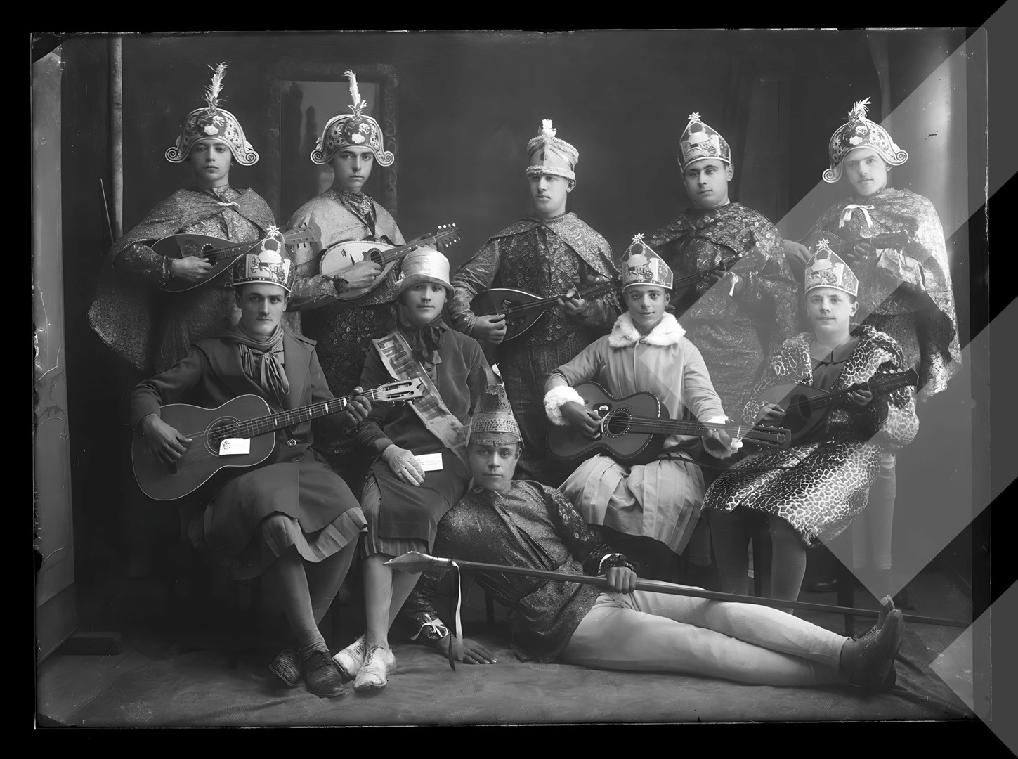 Ath. Nikolakopulos, rreth 1920, Ditë karnavalesh, Korçë, pllakë xhami, 13 x 18 cm.