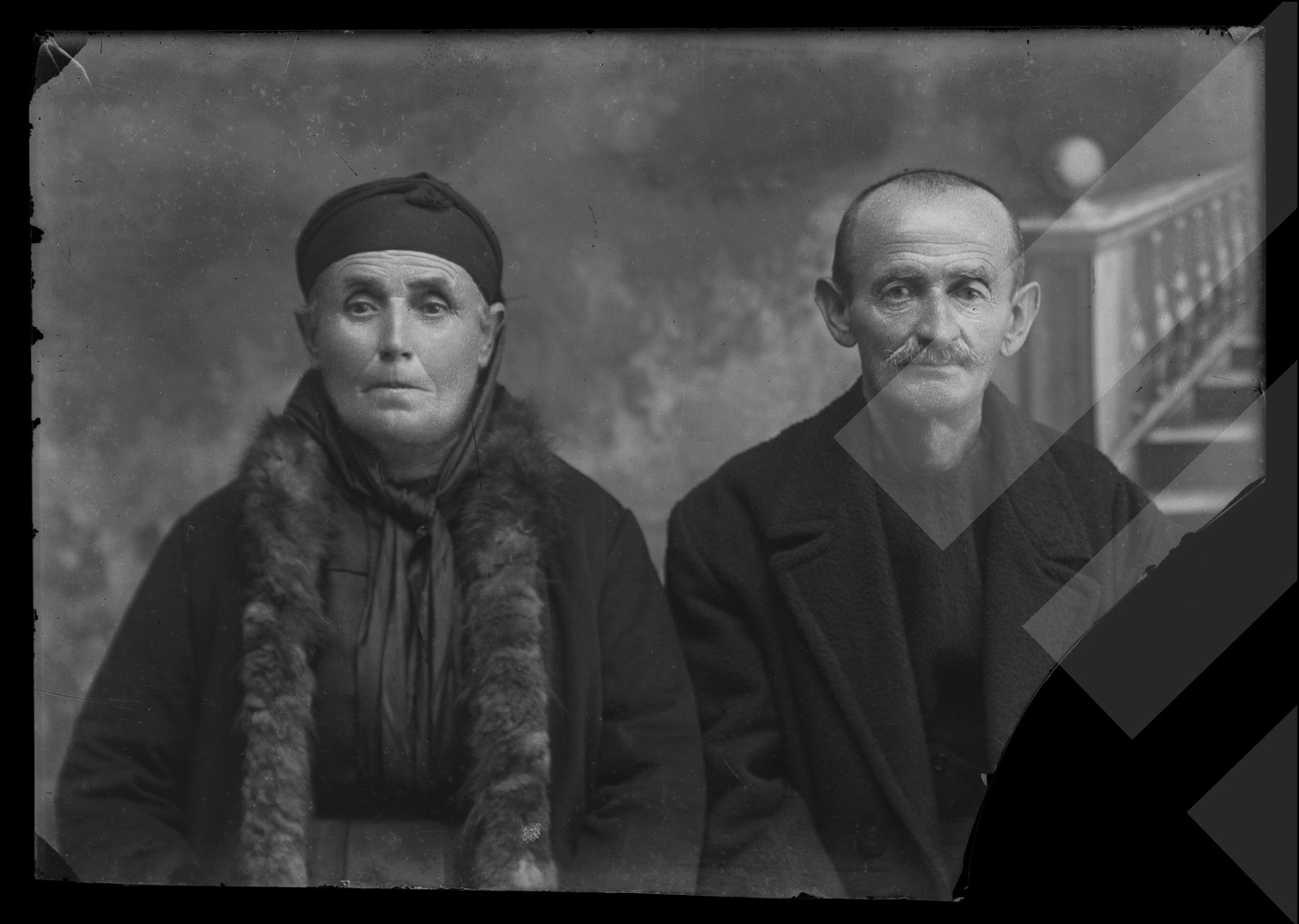 Ath. Nikolakopulos, rreth 1920-1925, Bashkëshortët, Korçë, pllakë xhami, 13 x 9 cm.