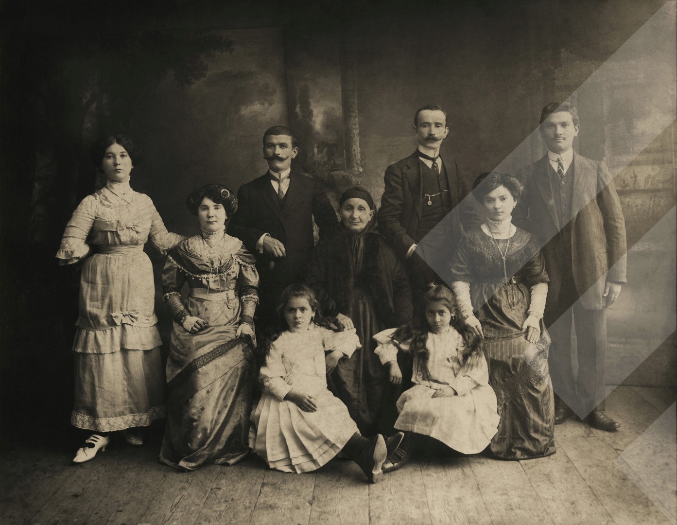 Ath. Nikolakopulos, rreth 1905-1910, Familje korçare, print në letër, 29 x 23 cm.