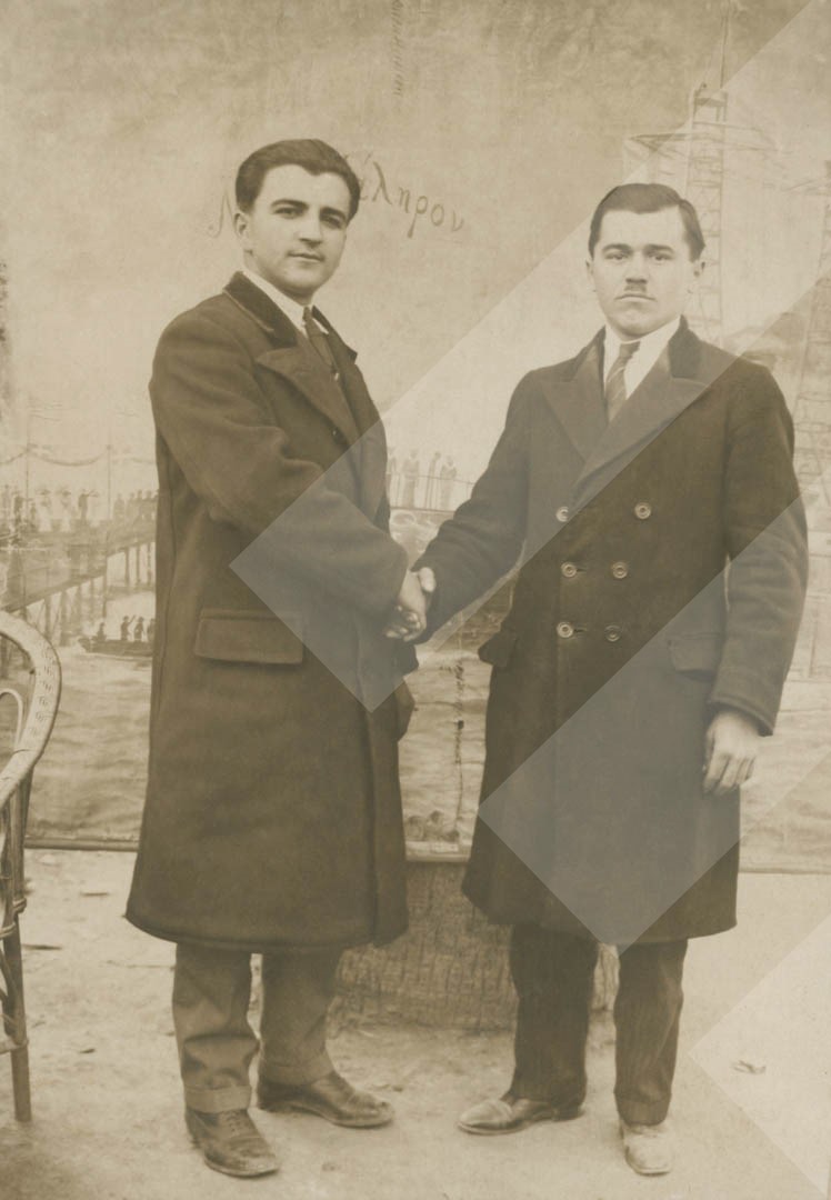 I panjohur, 1927, Dy miq në pozë (majtas Vasil Ristani), print në letër, 8 x 12 cm.