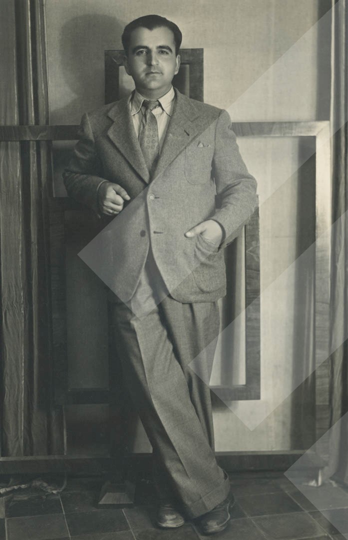 Vasil Ristani, rreth 1940, Autoportret në studio. Tiranë, print në letër, 10 x 15 cm.