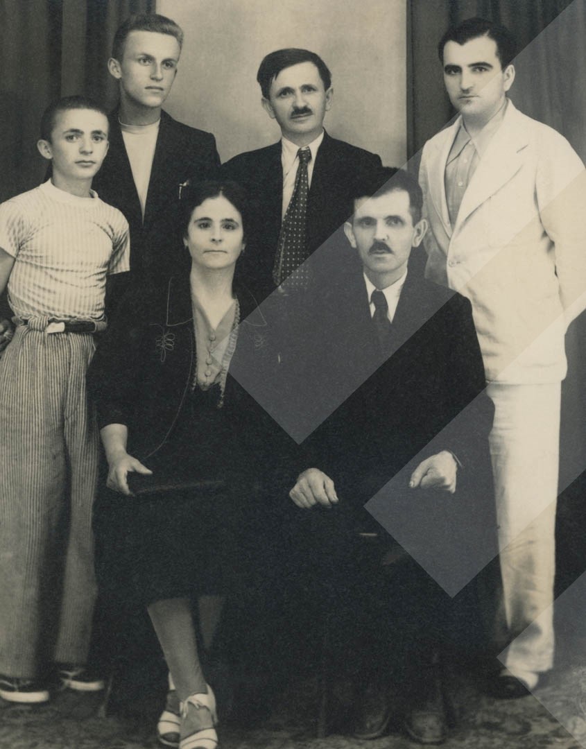 Studio Ristani, rreth 1940, Vasil Ristani (djathtas) me të afërm të tij, 9 x 11 cm.