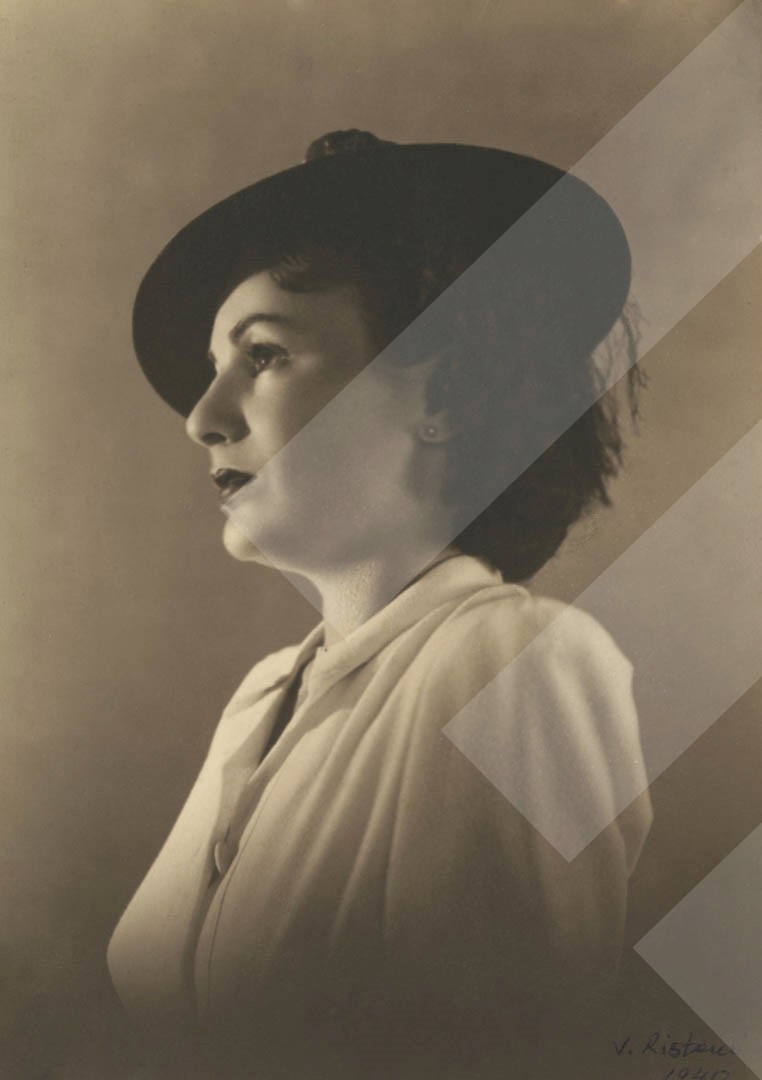 Vasil Ristani, 1940, Portret i Tefta Tashko Koços, print në letër, 12 x 17 cm.