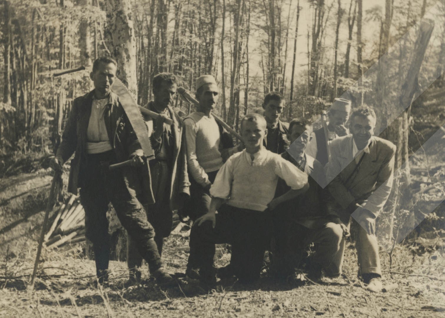 I panjohur, rreth 1948, Vasil Ristani (djathtas) me sharrëxhinjtë e Hotolisht, print në letër, 10 x 14 cm.