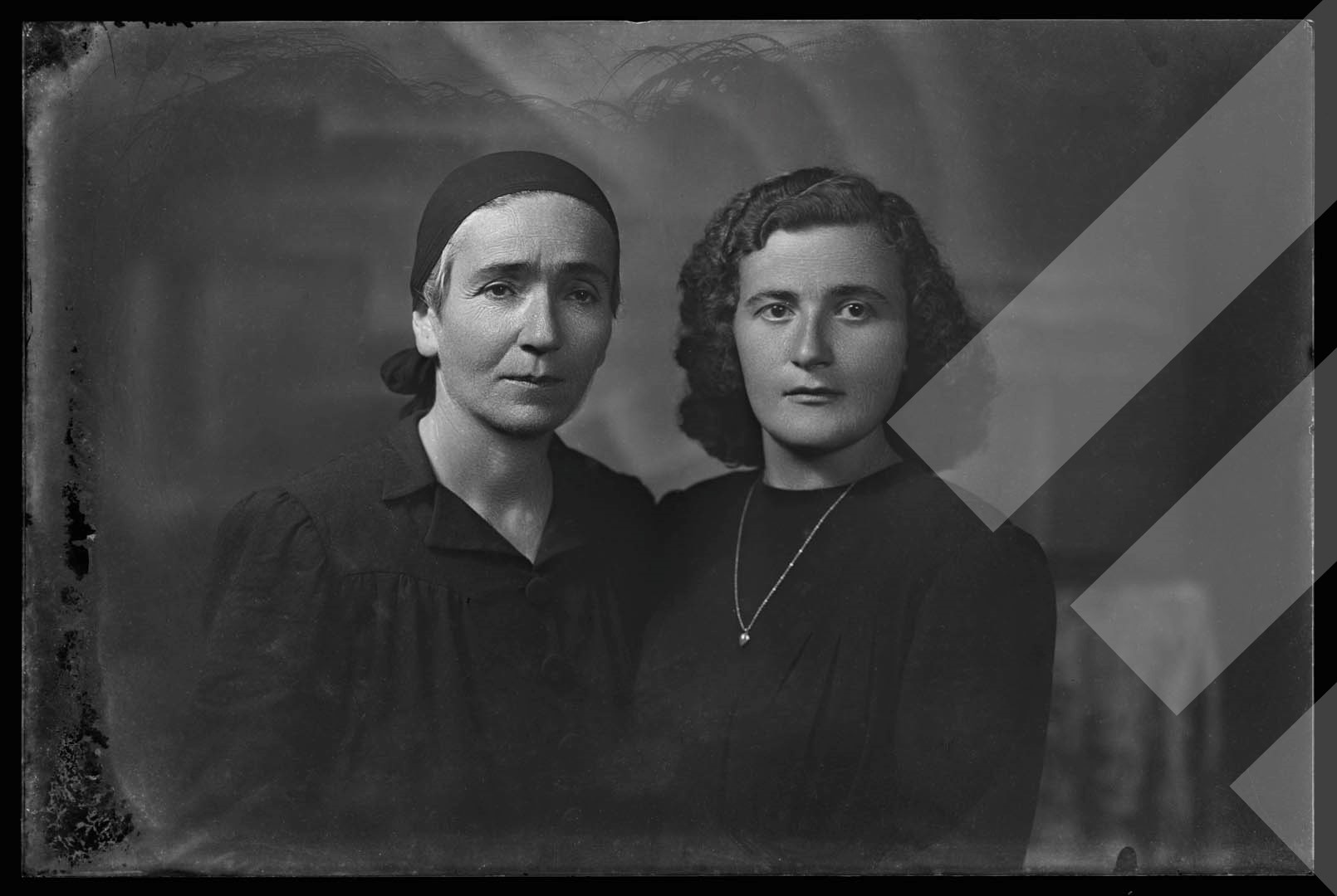 Vasil Ristani, 1939, Aleksandra Dhima me të bijën, Tulla, pllakë xhami, 10 x 15 cm.