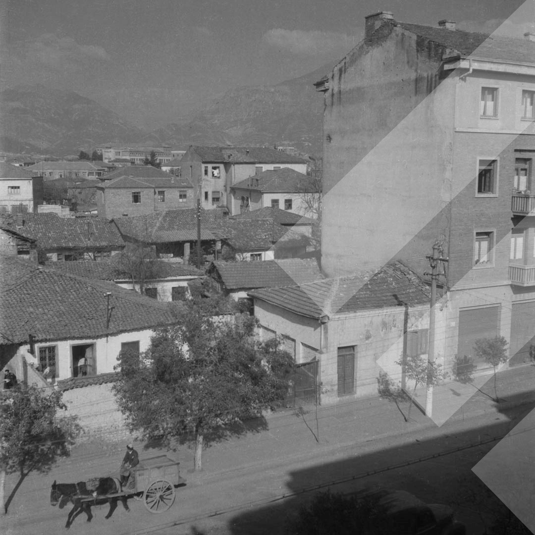 Vasil Ristani, 1969, Pamje ndërtesash tiranase, negativ, 6 x 6 cm.