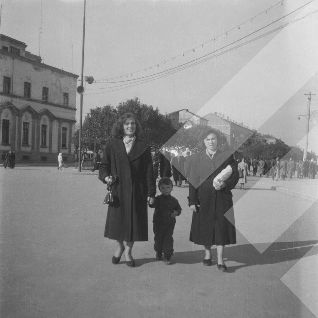 Vasil Ristani, 1950, Shëtitje në qendër të Tiranës, negativ, 6 x 6 cm.