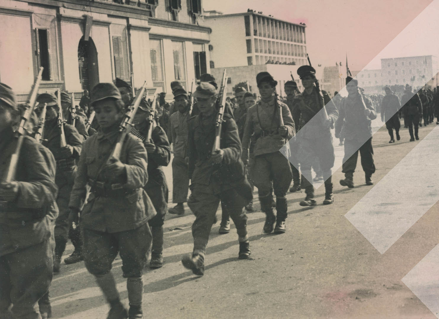 Vasil Ristani, 1944, Parakalim partizan në Tiranë, 28 nëntor 1944, print në letër, 17 x 23 cm,.