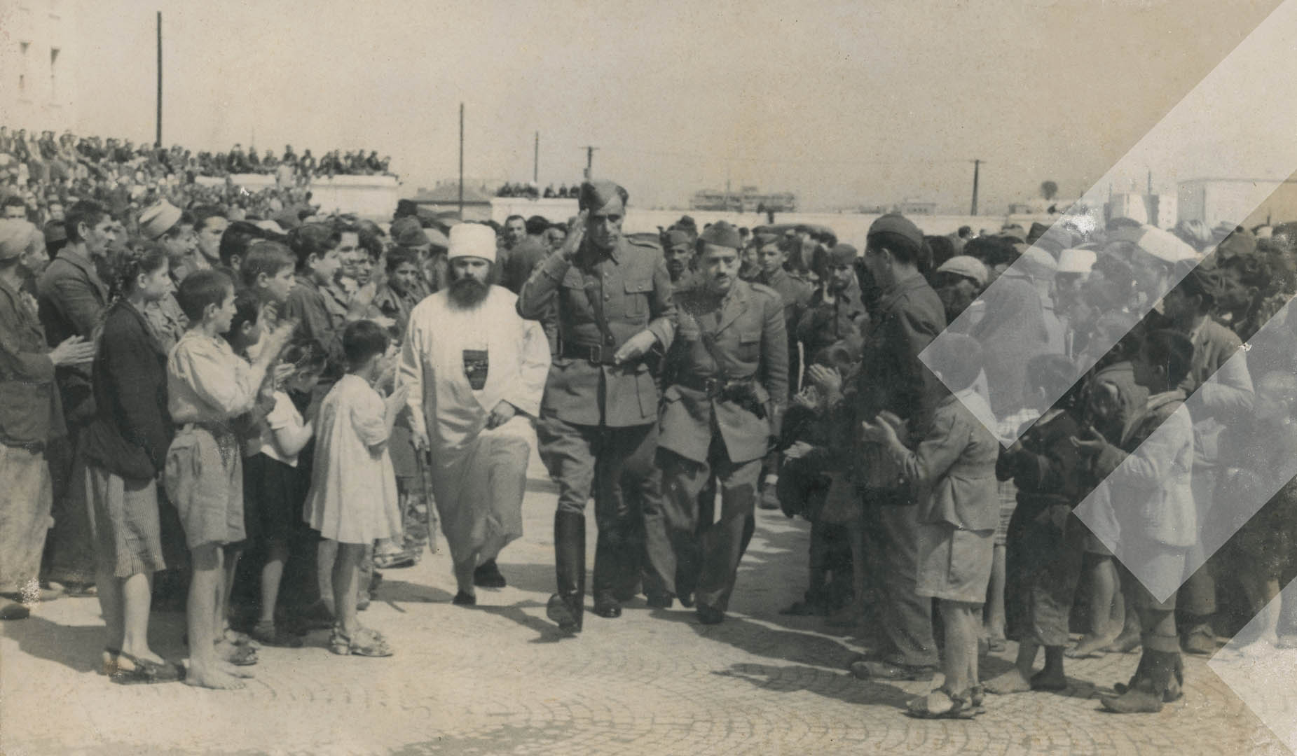 Vasil Ristani, 1946, Udhëheqës komunistë duke hyrë në mbledhjen e Asamblesë Kushtetuese, Tiranë, print në letër, 14 x 23 cm,.