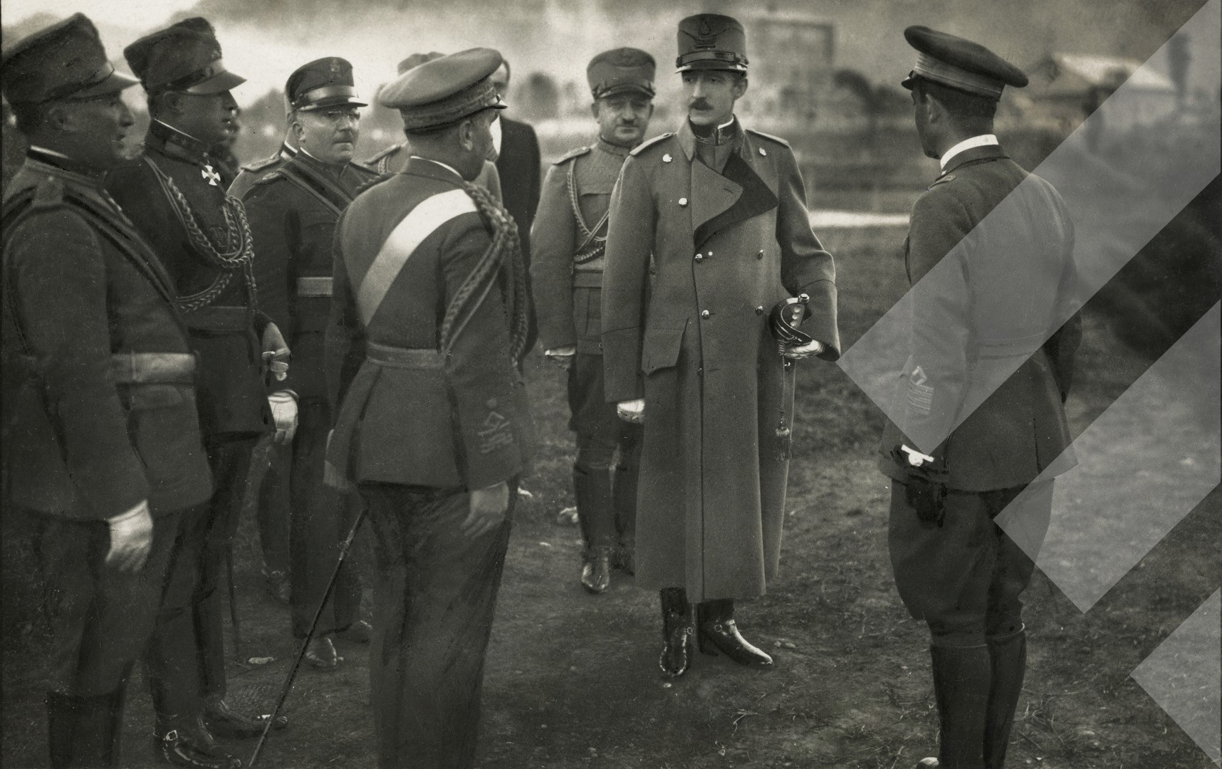 Otello Renzoni, 1930, Aviatorët italianë përshëndesin Mbretin Zog, print në letër, 14 x 9 cm.