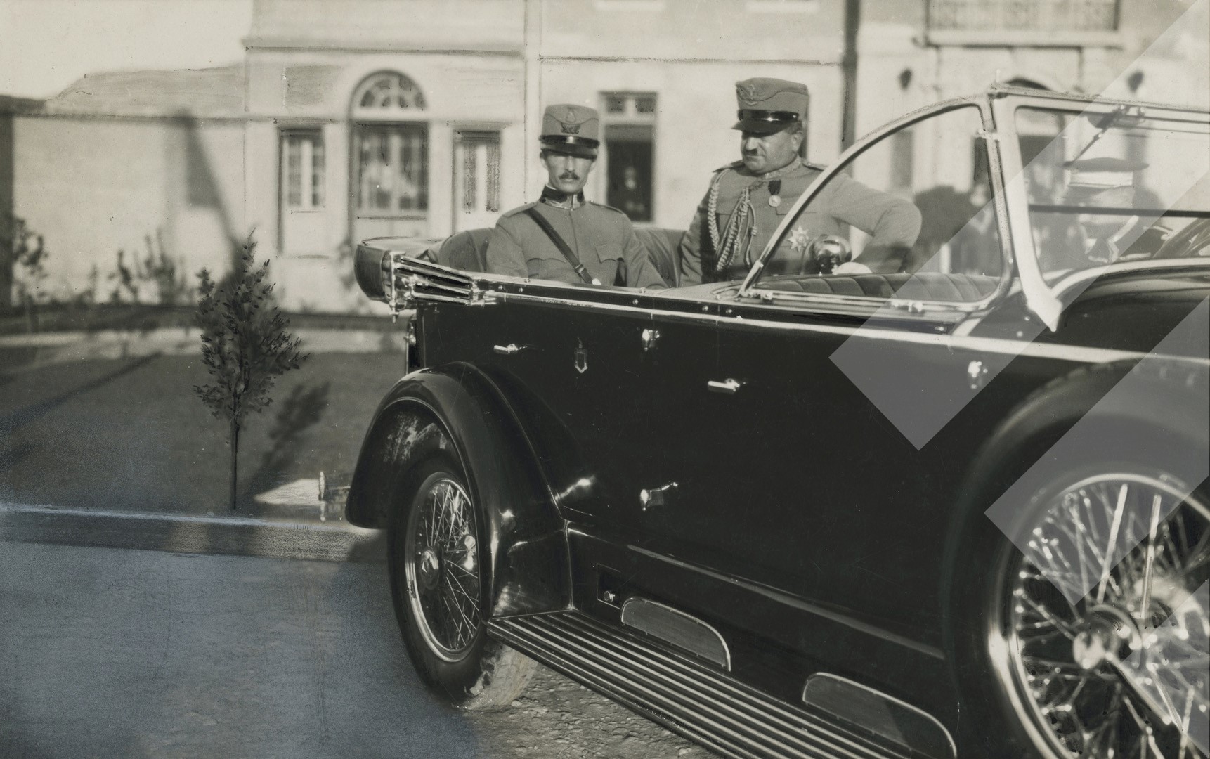 Otello Renzoni, 1930, Mbreti Zog në makinë me Gjeneral Xhemal Araniti, print në letër, 14 x 9 cm.