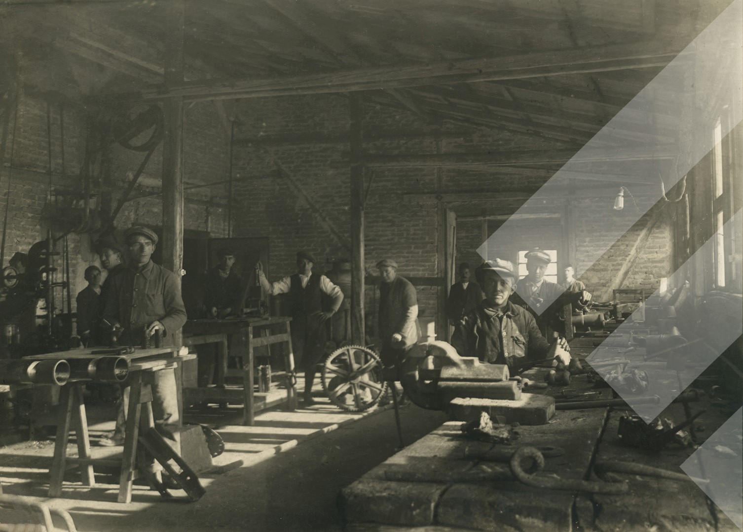Otello Renzoni, 1929, Ofiçinat e kantierit të portit të Durrësit, print në letër, 17 x 12 cm.