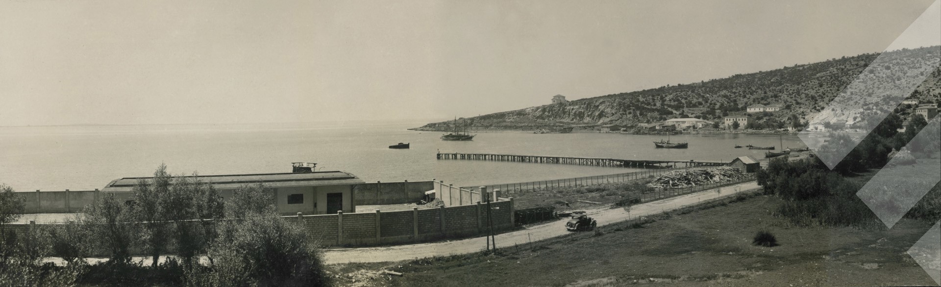Otello Renzoni, 1931, Pamje panoramike e Shëngjinit, print në letër, 24 x 18 cm.