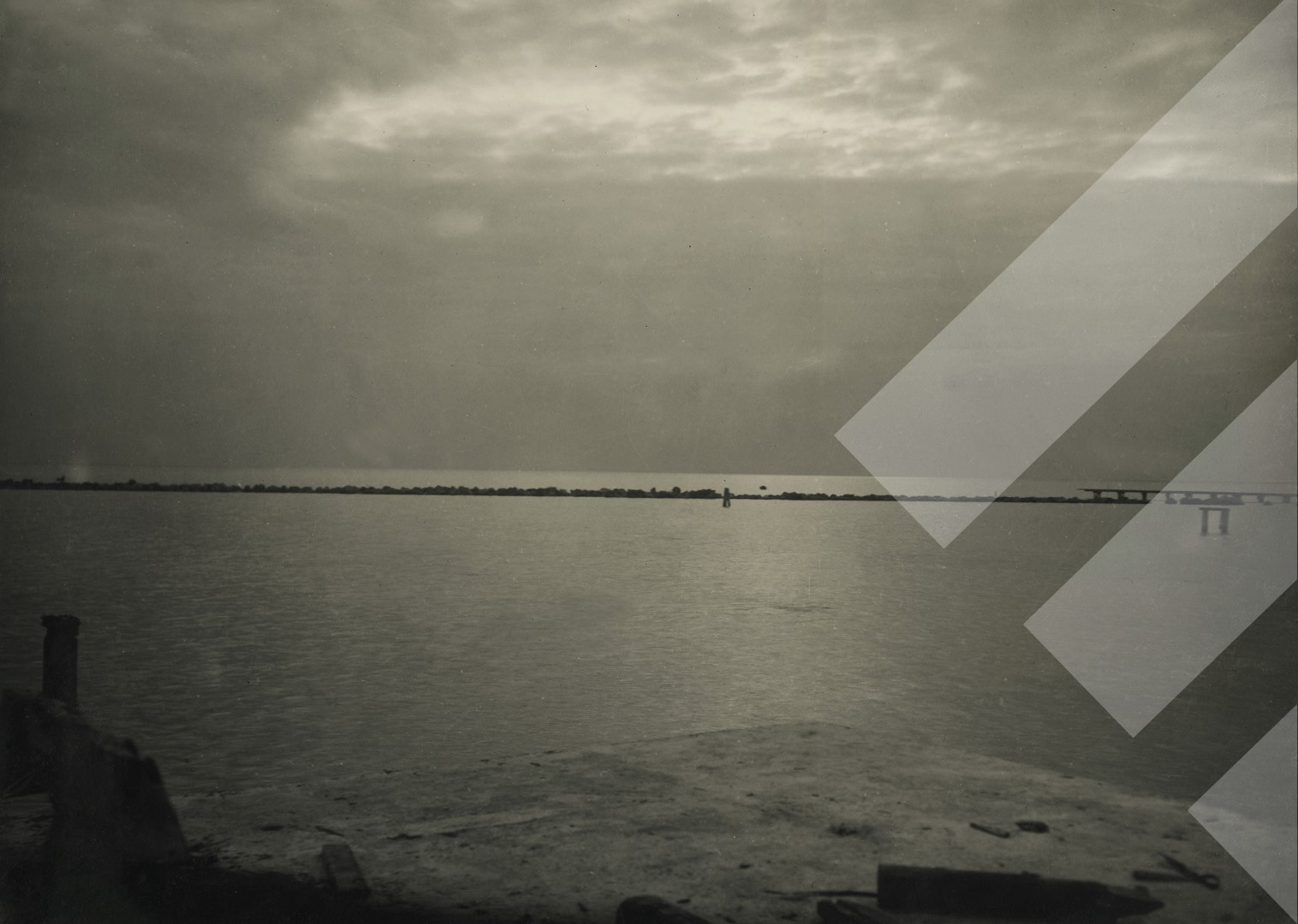 Otello Renzoni, 1930, Skela perëndimore e portit të Durrësit, print në letër, 22 x 16 cm.