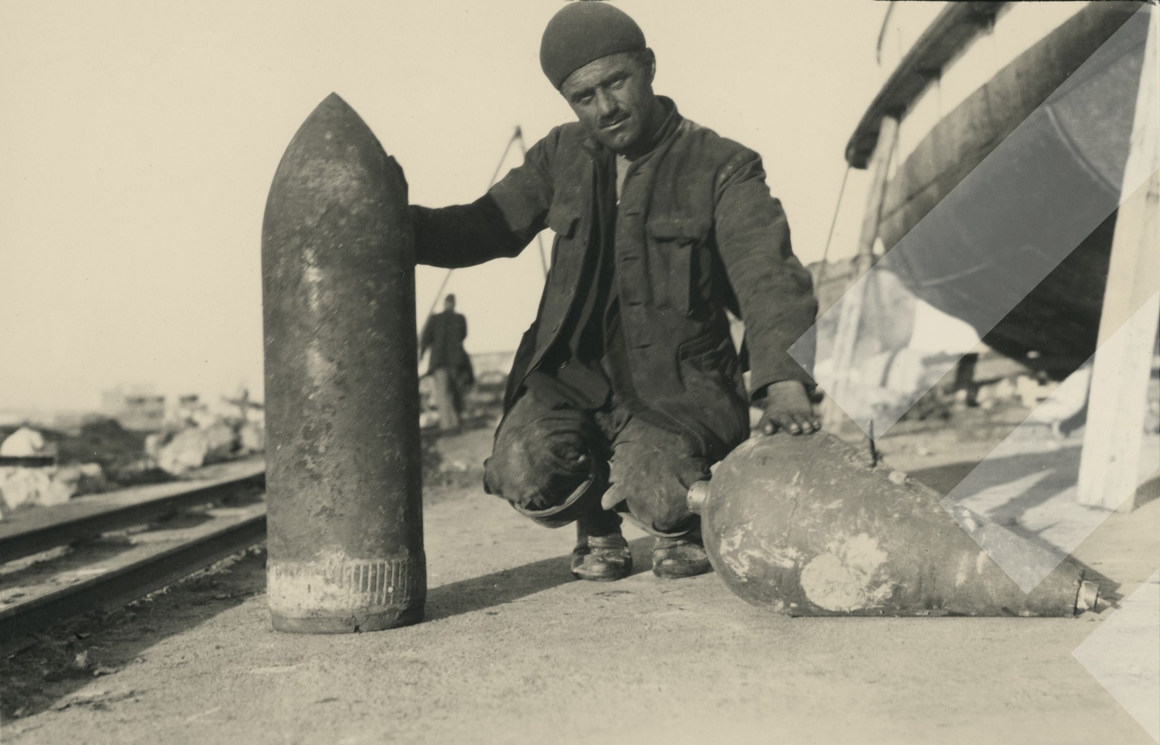Otello Renzoni, 1932, Predha nga Lufta e Parë Botërore, nxjerrë pas punimeve për thellimin e portit të Durrësit, print në letër, 14 x 9 cm.