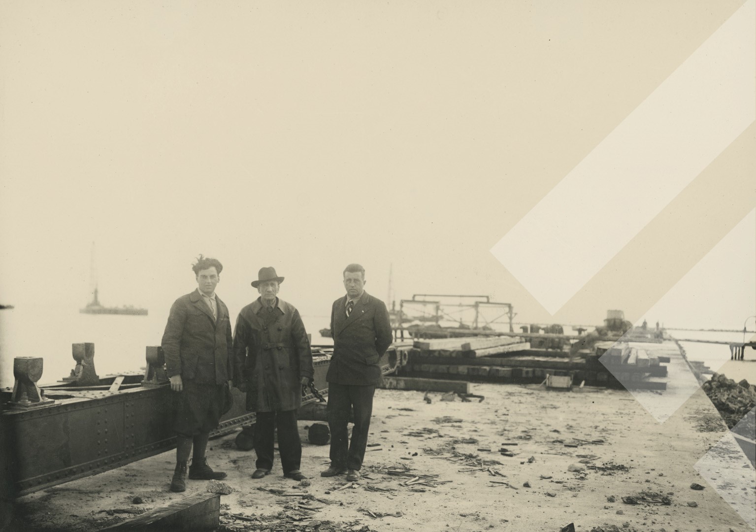 Otello Renzoni, 1931, Sipërmarësit e shoqërisë ndërtuese “Ing. Fratelli Mazorana”, Durrës, print në letër, 22 x 16 cm.