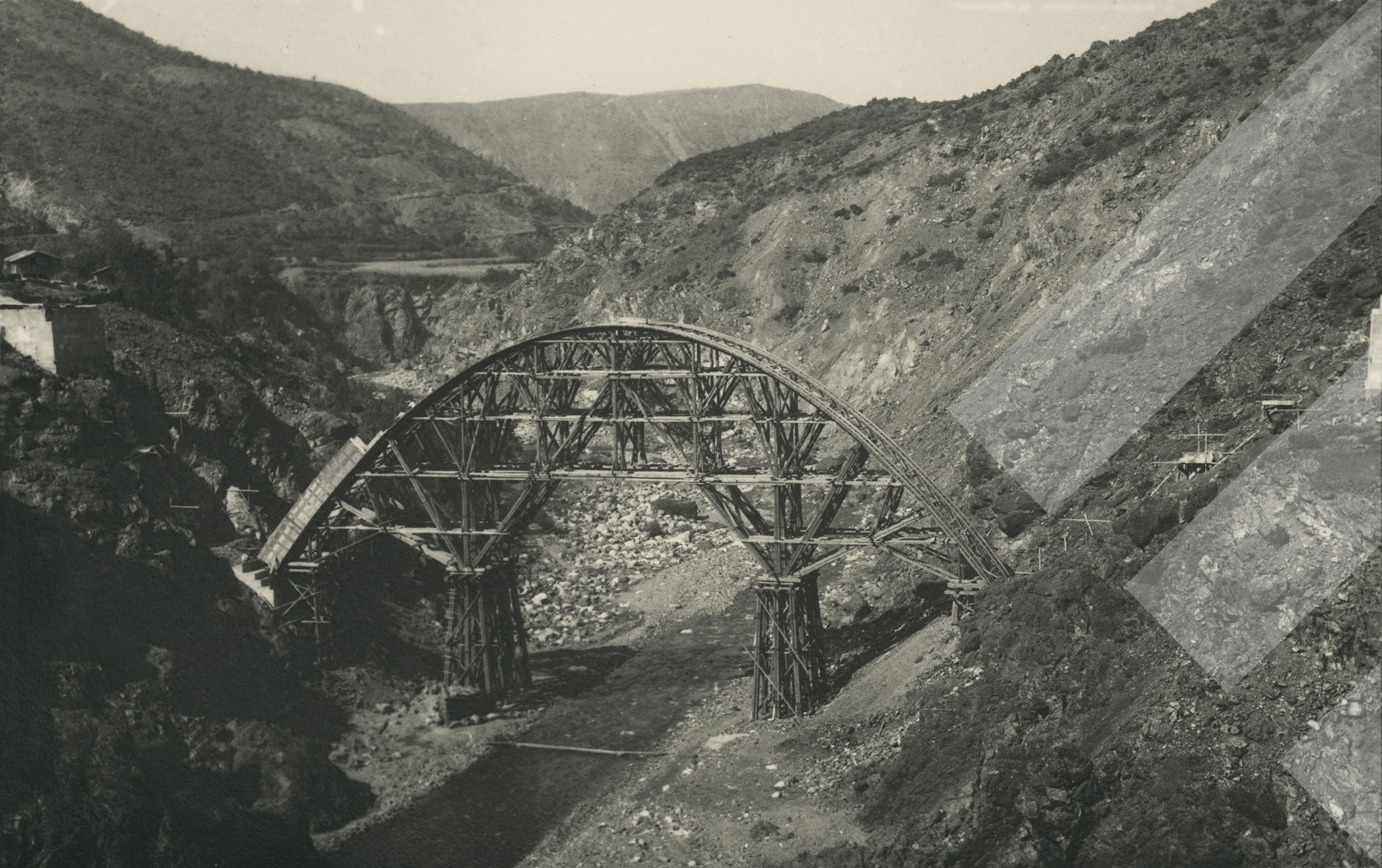 Otello Renzoni, Ura e Gomsiqes në ndërtim, 1 tetor 1934, print në letër, 14 x 9 cm.