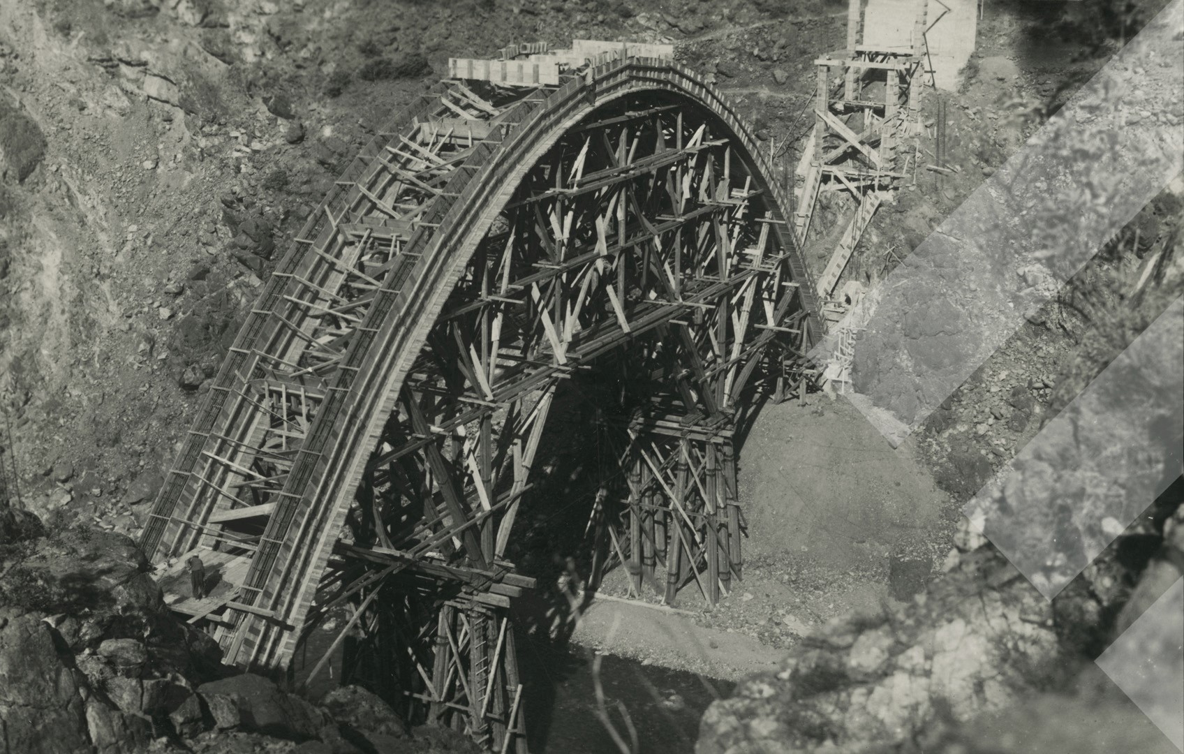 Otello Renzoni, 1934, Ura e Gomsiqes në ndërtim, print në letër, 14 x 9 cm.