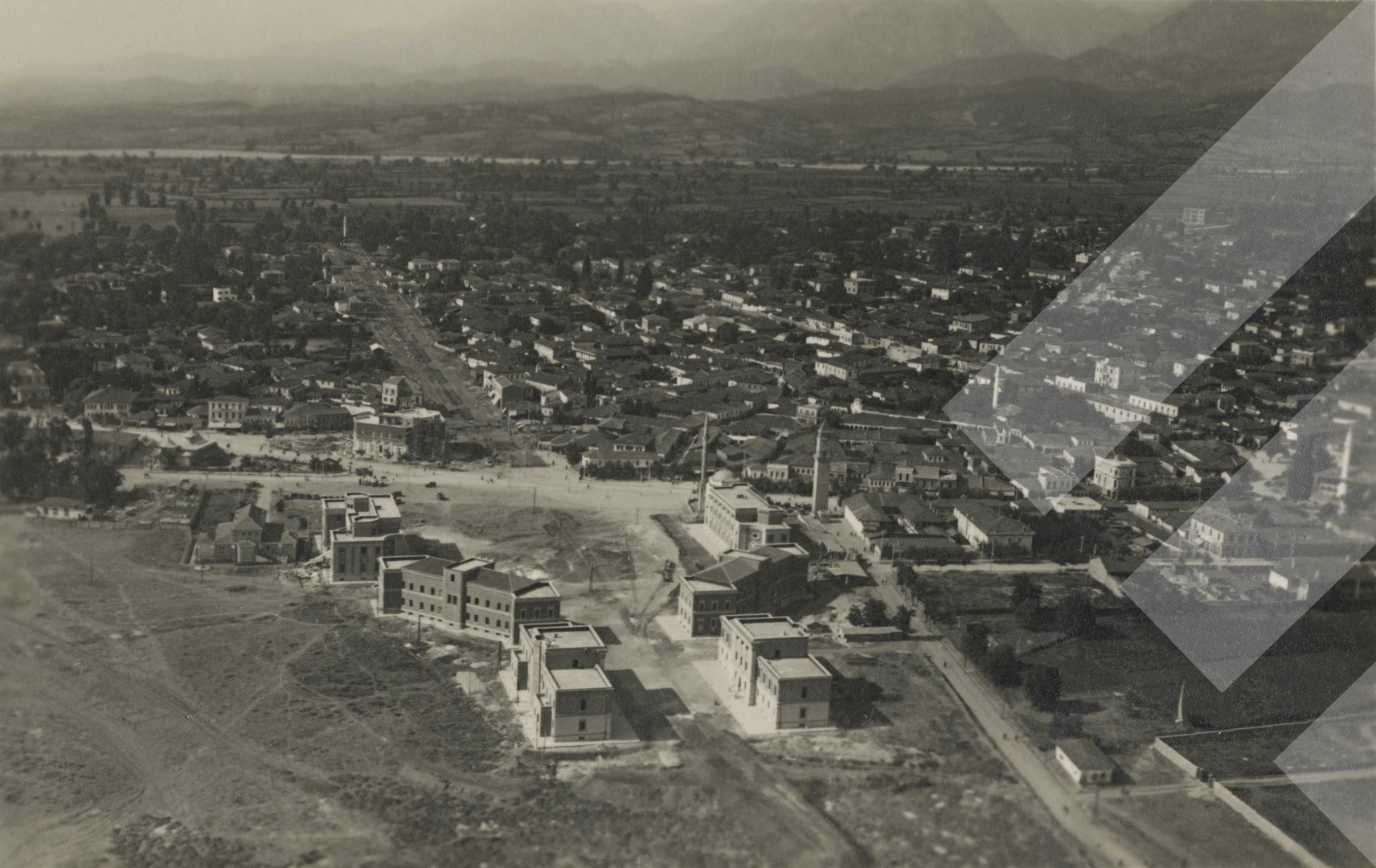 Otello Renzoni, 1932, Pamje ajrore e Tiranës, print në letër, 9 x 14 cm.