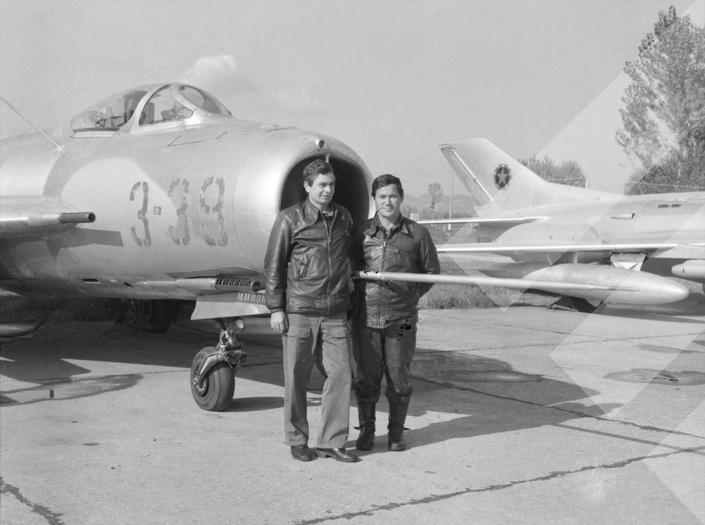 Petrit Ristani, 1984, Oficerë në bazën ajrore, Rinas, negativ,, 4.5 x 6 cm.