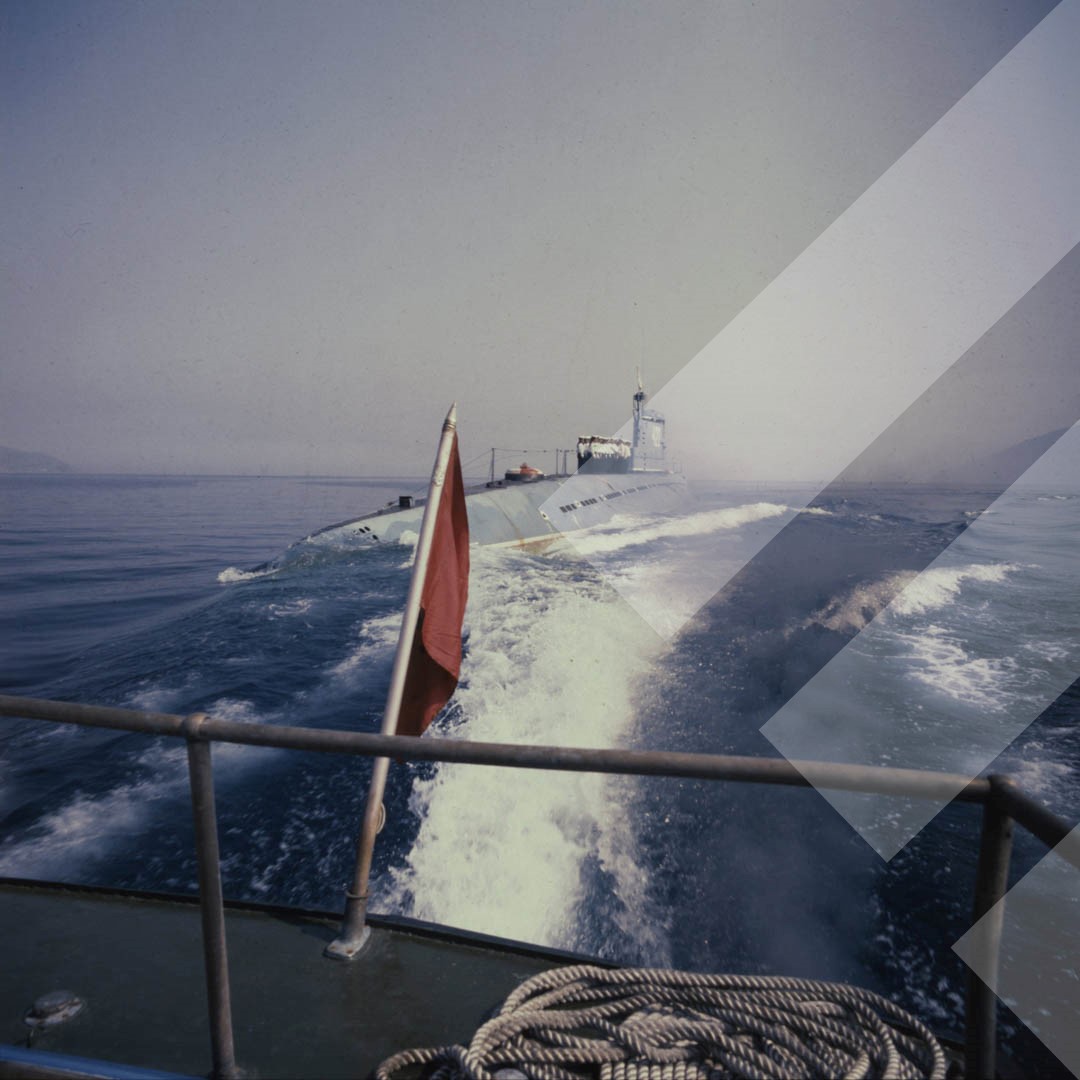 Petrit Ristani, 1980, Manovra në stërvitjen e flotës detare, Vlorë-Sarandë, negativ,, 6 x 6 cm.
