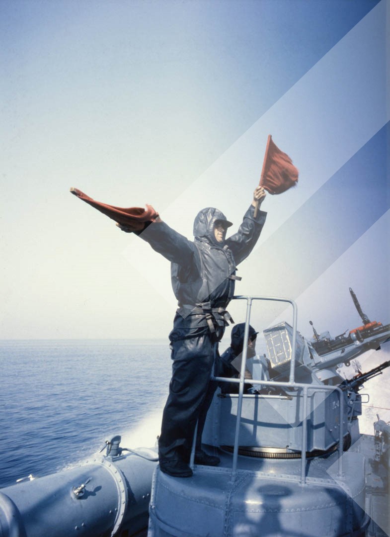 Petrit Ristani, 1984, Manovra në stërvitjen e flotës detare, Vlorë-Sarandë, negativ,, 4.5 x 6 cm.
