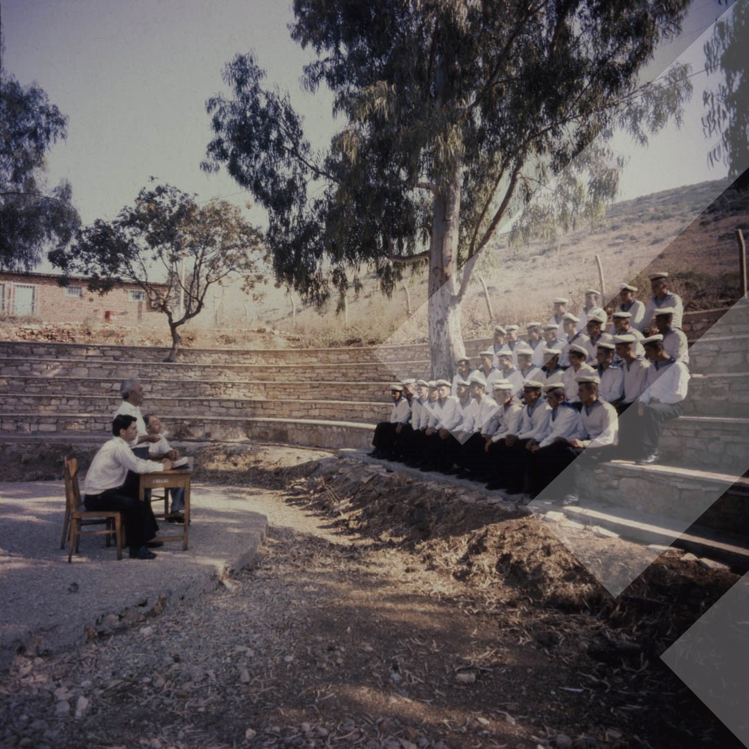 Petrit Ristani, 1980, Kadetë në repartin ushtarak, negativ,, 6 x 6 cm.