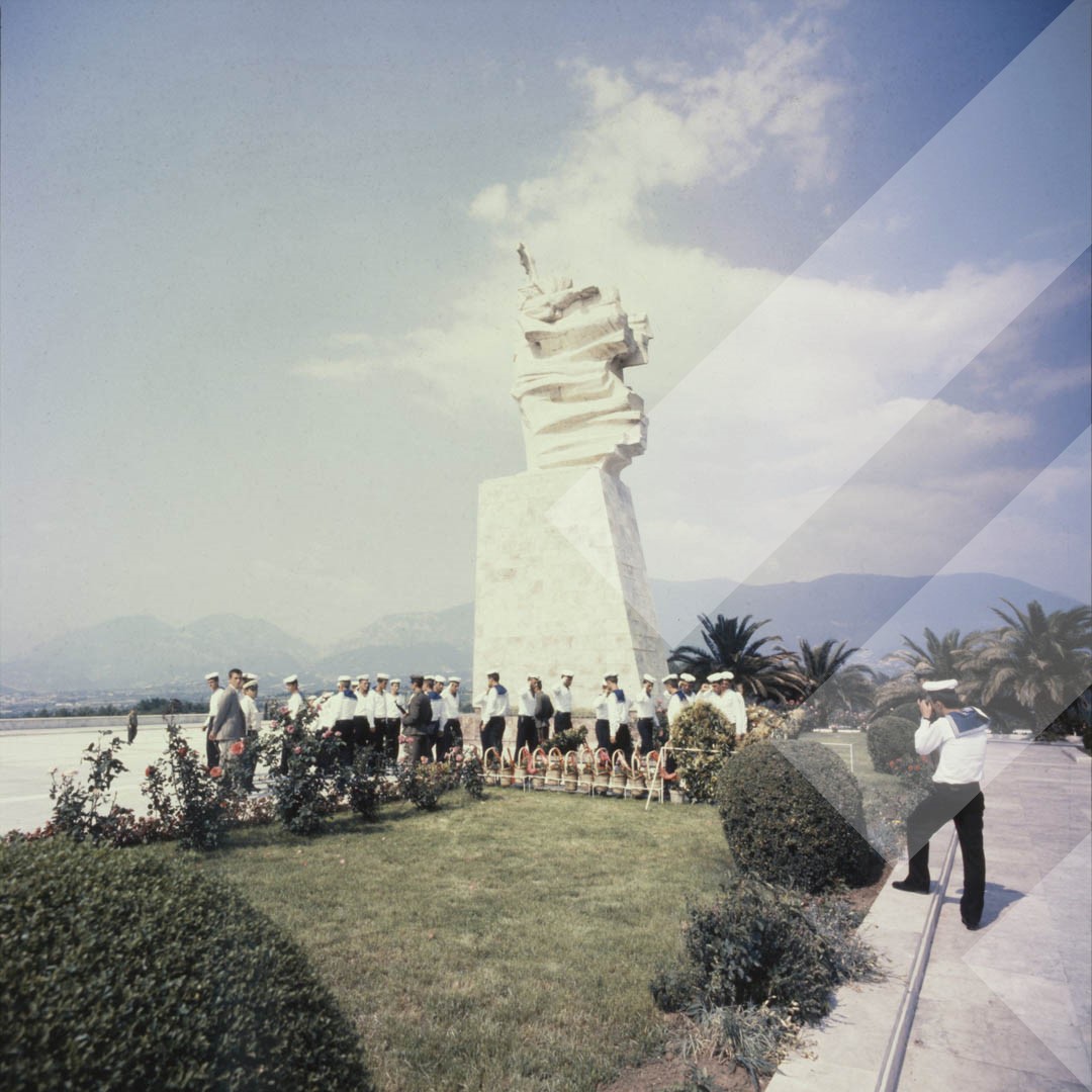 Petrit Ristani, 1980, Vizitë e kadetëve në Varrezat e Dëshmorëve, Tiranë, negativ,, 6 x 6 cm.