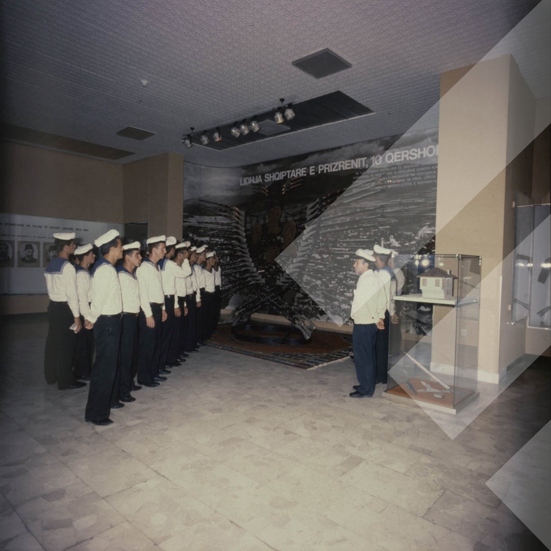 Petrit Ristani, 1980, Vizitë e kadetëve në Muzeun Historik, Tiranë, negativ,, 6 x 6 cm.