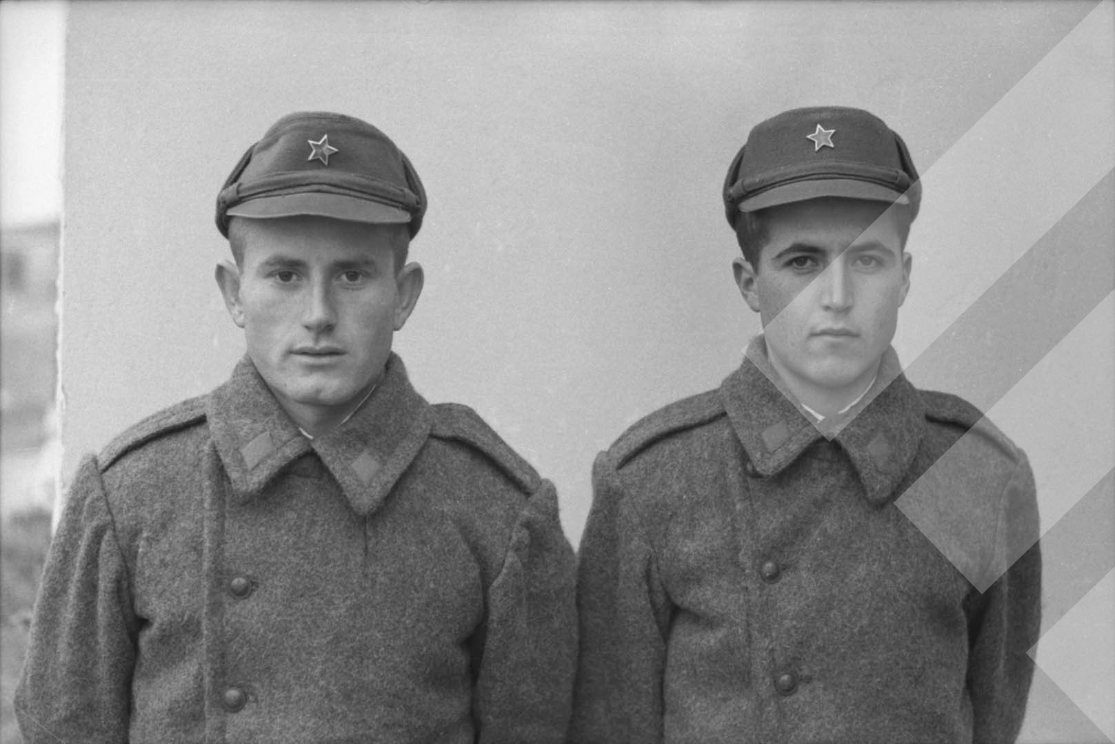 Petrit Ristani, 1985, Ushtarë në pozë, negativ,, 35 mm.