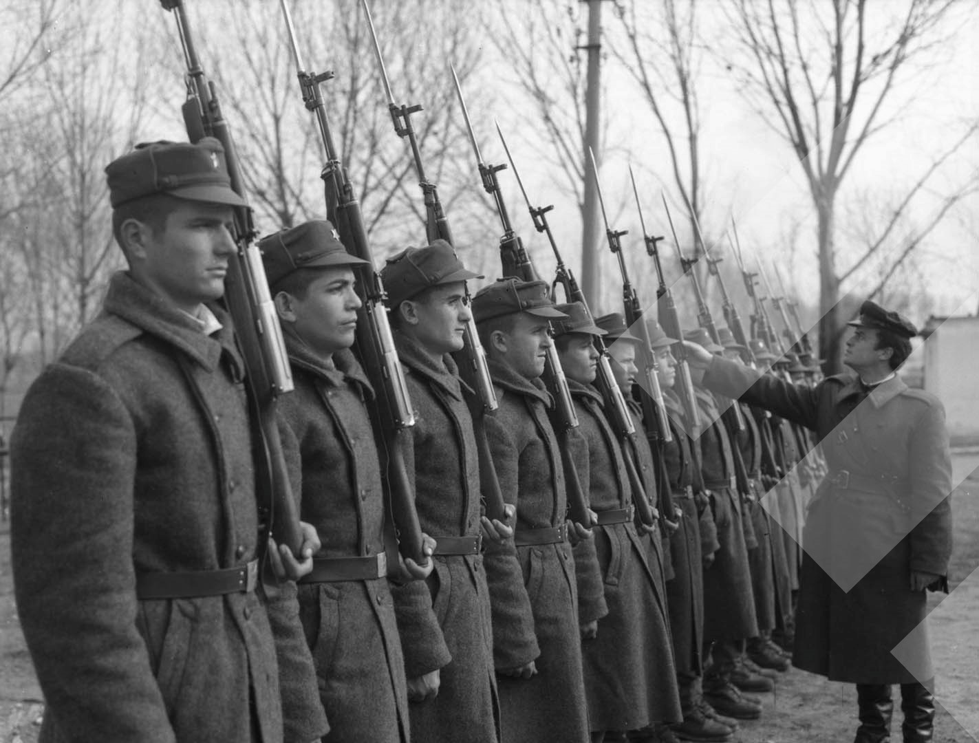 Petrit Ristani, 1985, Ushtarë në rreshtore, Divjakë, negativ,, 4.5 x 6 cm.