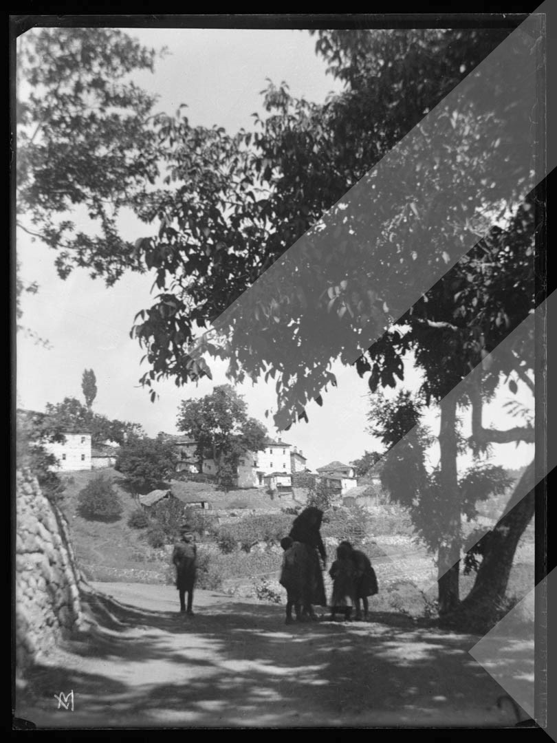 Vangjush Mio , "", rreth 1930-1935 , , Skenë nga një fshat i Korçës , , pllakë xhami , 9 x 12 cm