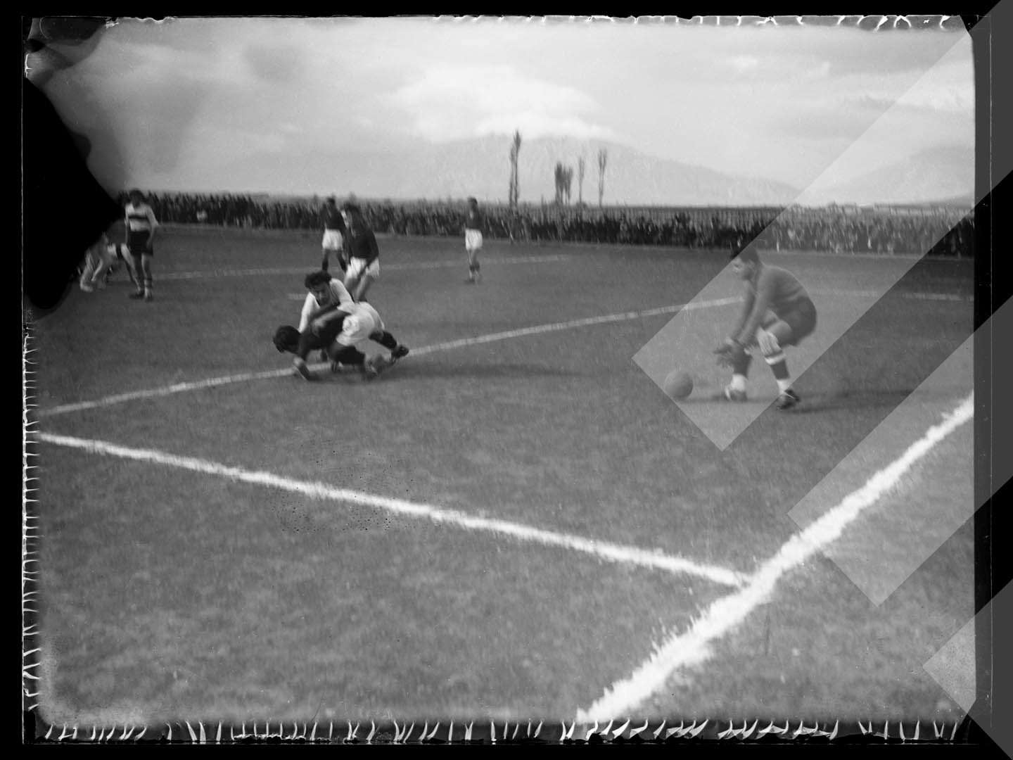 Vangjush Mio , "", rreth 1930-1935 , , Gjatë një ndeshjeje futbolli , , pllakë xhami , 9 x 12 cm