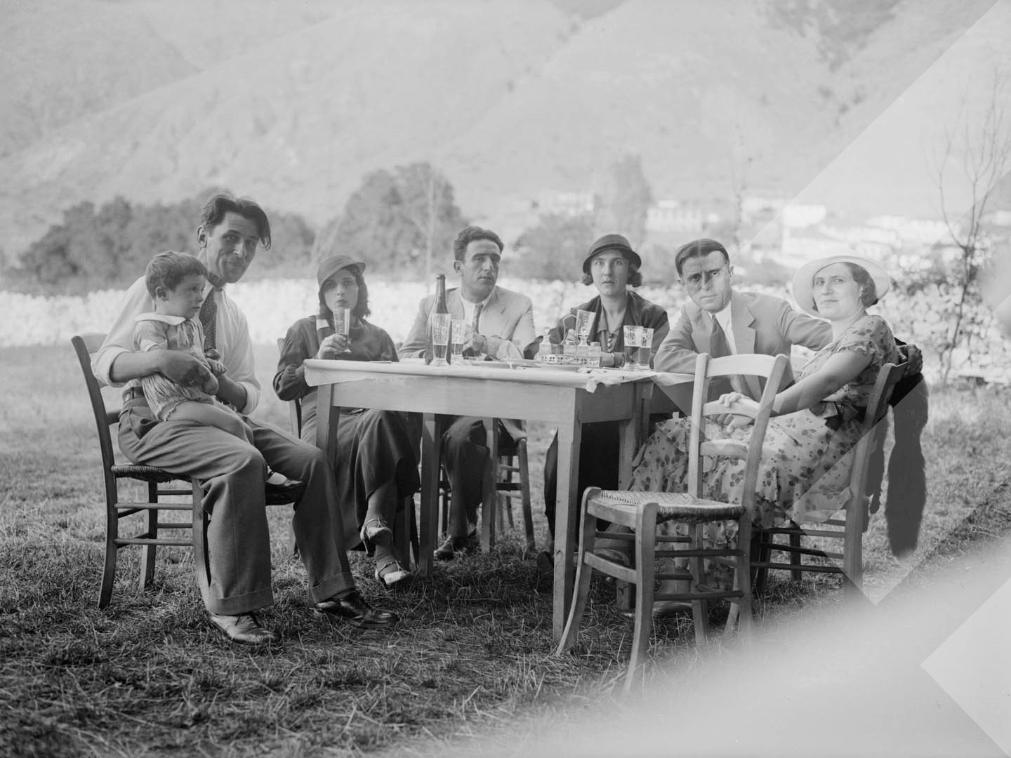 Vangjush Mio , "", rreth 1930-1935 , , Drekë në natyrë e familjeve Mio dhe Sotiri , , pllakë xhami , 9 x 12 cm