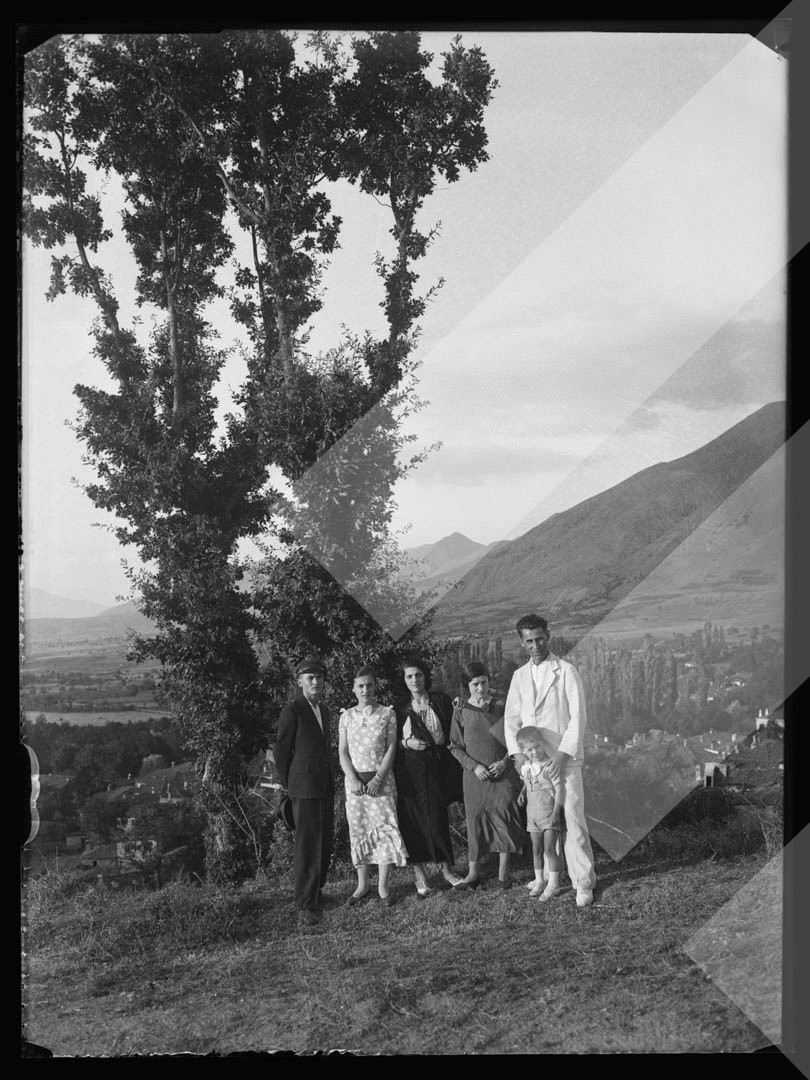 Vangjush Mio , "", rreth 1930-1935 , , Foto familjare gjatë një shëtitjeje , , pllakë xhami , 9 x 12 cm