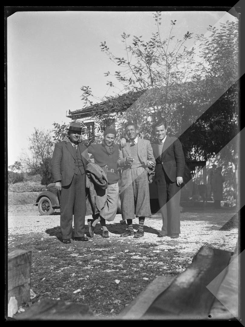 Vangjush Mio , "", rreth 1930-1935 , , Vangjush Mio (i dyti majtas) me miq , , pllakë xhami , 9 x 12 cm