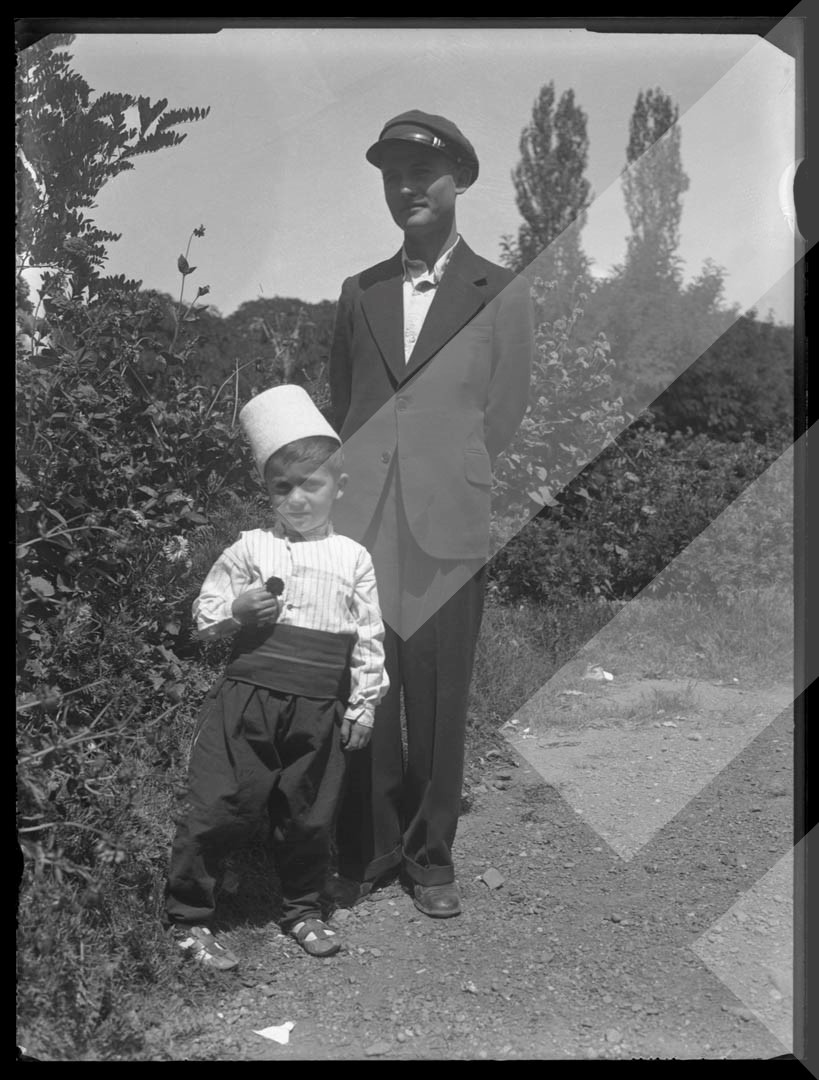Vangjush Mio , "", rreth 1930-1935 , , I biri Vangjush Mios, Thimaqi me veshje tradicionale , , pllakë xhami , 9 x 12 cm