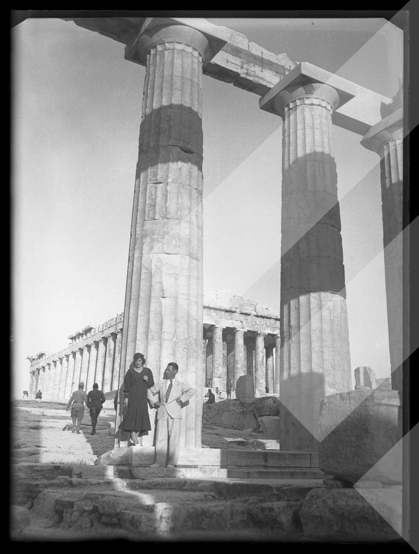 Vangjush Mio , "", rreth 1930-1935 , , Çifti Mio gjatë vizitës në Akropol, Athinë , , pllakë xhami , 9 x 12 cm