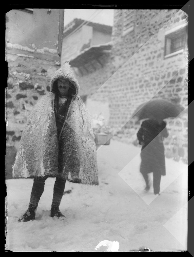 Vangjush Mio , "", rreth 1930-1935 , , Skenë dimri në Korçë , , pllakë xhami , 9 x 12 cm