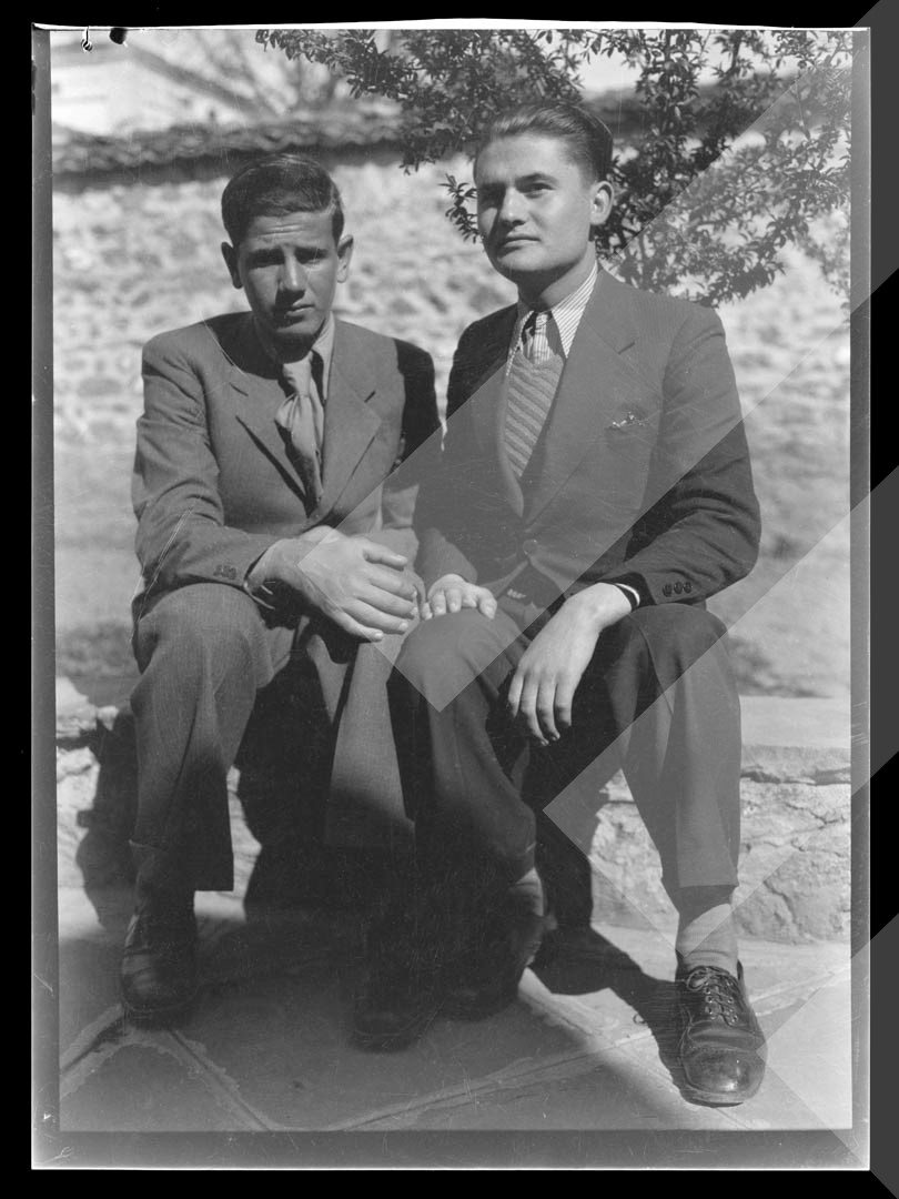 Vangjush Mio , "", rreth 1930-1935 , , Dy të rinj në pozë , , negativ , 9 x 12 cm