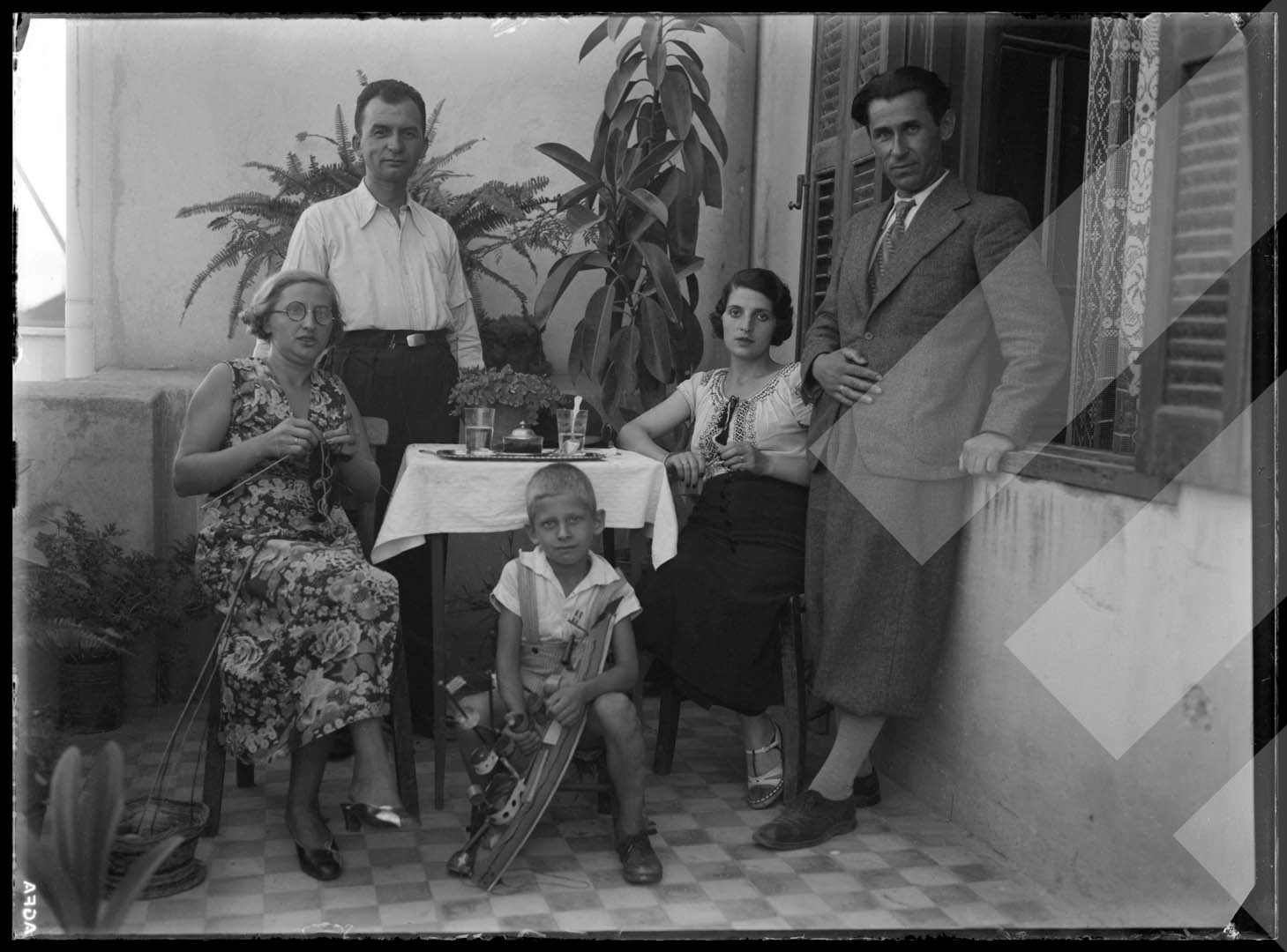 Vangjush Mio , "", rreth 1930-1935 , , Çifti Mio (djathtas) gjatë pushimeve me miq , , pllakë xhami , 9 x 12 cm