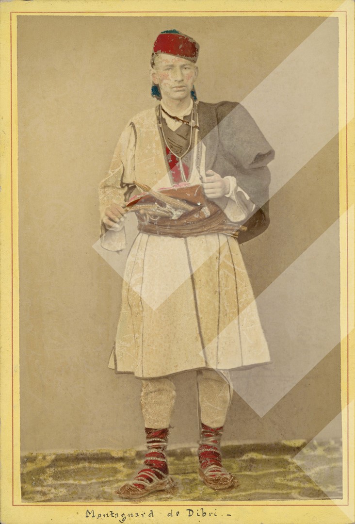 Pjetër Marubi, rreth 1865-1875, malësor nga Dibra, print në letër i ngjyrosur me dorë, 10 x 15 cm.